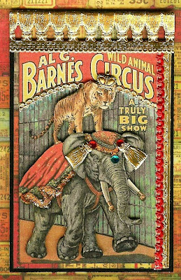 This is my interpretation of the theme. I love black and gold together so I created this vintage circus ATC using red and gold instead. Please visit: http://createdbyhandchallenge.wordpress.com/ to join in on the challenge this week!